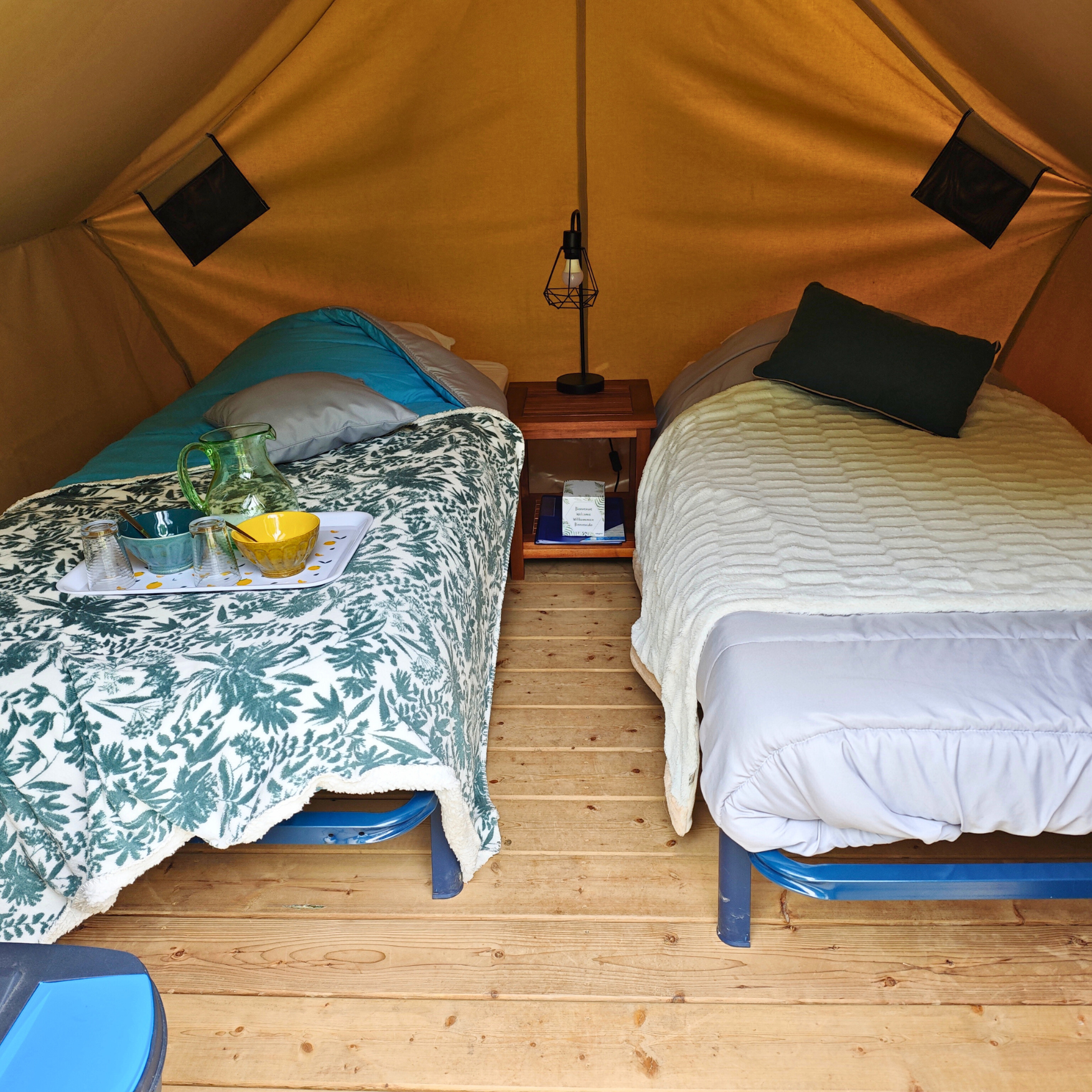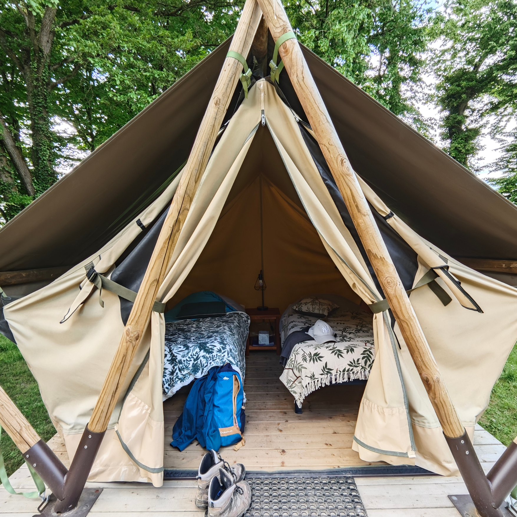 - Immersion totale : cet hébergement vous permet de vivre une expérience unique en pleine nature grâce à sa structure sur pilotis qui vous isole du sol, tout en vous permettant de profiter de la fraîcheur de la forêt de Brocéliande. La toile résistante aux intempéries et à la chaleur, associée aux armatures en bois, crée une atmosphère chaleureuse et cosy, idéale pour une immersion totale dans la nature.