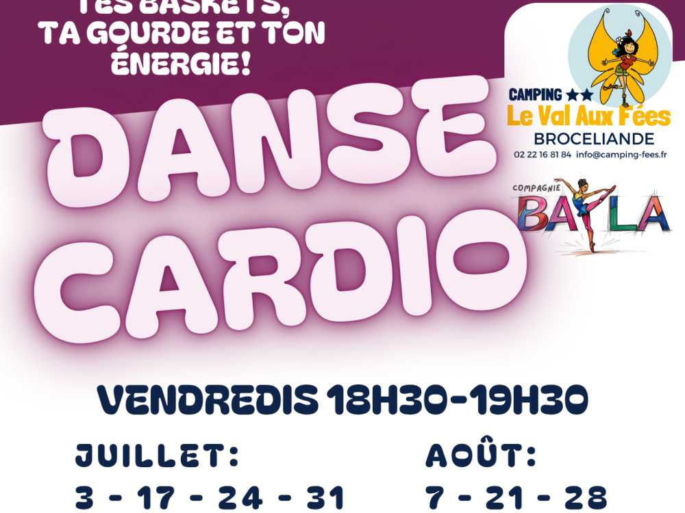 Vibrez au rythme de la Danse Cardio avec Yaiza de la Compagnie Bayla au camping Le Val aux Fées ! Des séances fun, accessibles à tous, pour réveiller votre corps en musique et faire le plein d’énergie positive !
