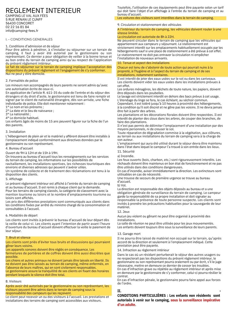 Emplacements : Arrivée de 15h à 19H - Départ avant 11h30