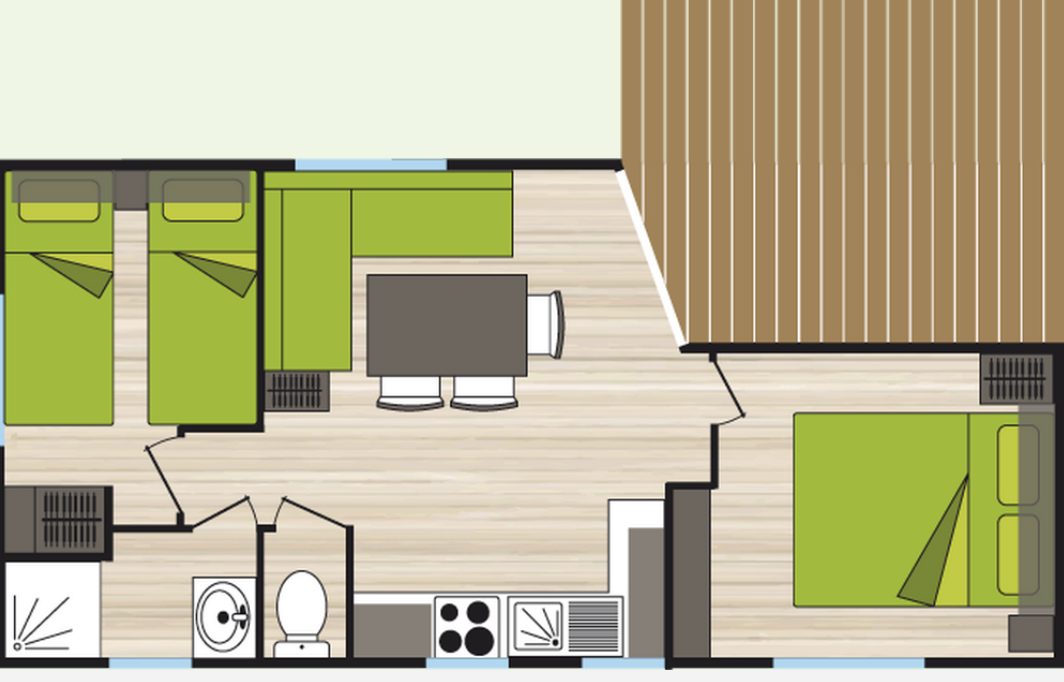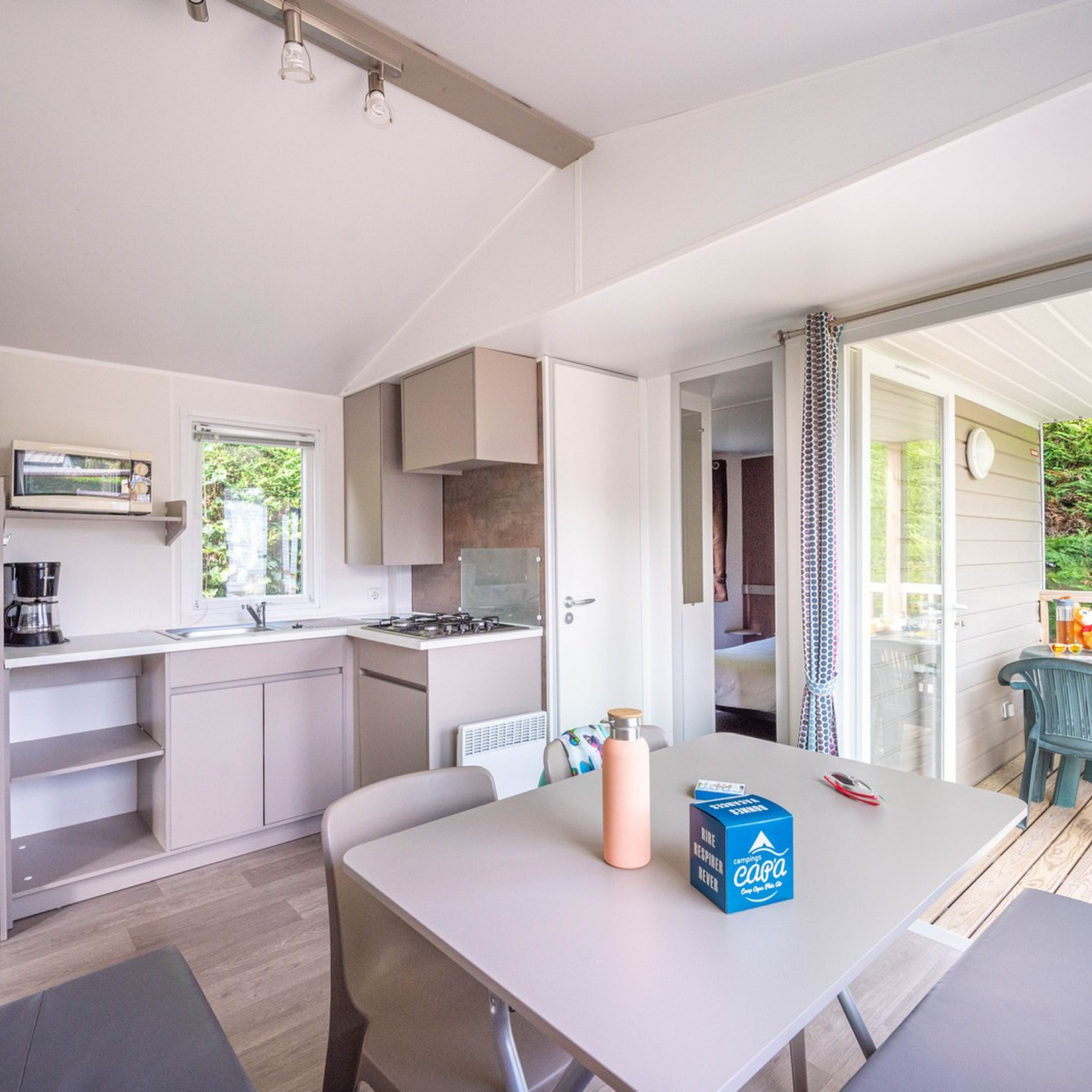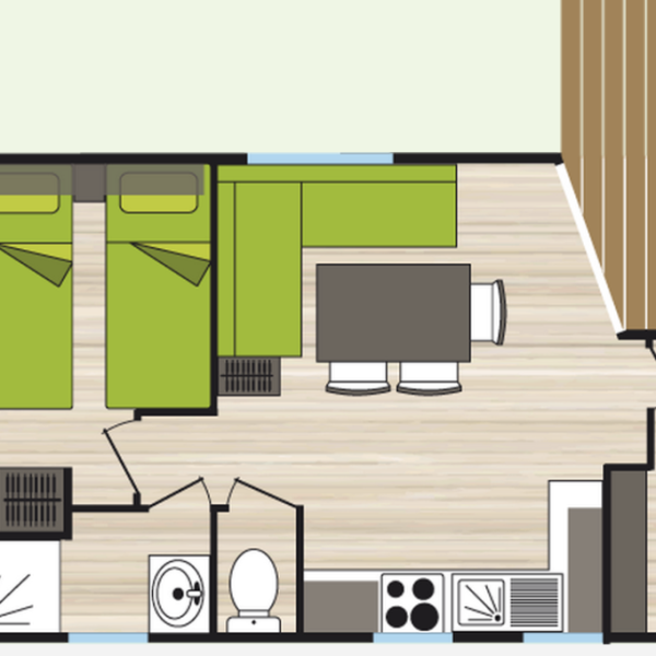 Séjournez au cœur de Brocéliande dans nos mobil-homes Standards de 26 m², conçus pour 2 adultes et 2 enfants. Fonctionnels et confortables, il comprennent un espace de vie lumineux, une cuisine équipée et une terrasse pour profiter du calme de la forêt légendaire, à proximité des sites mythiques.