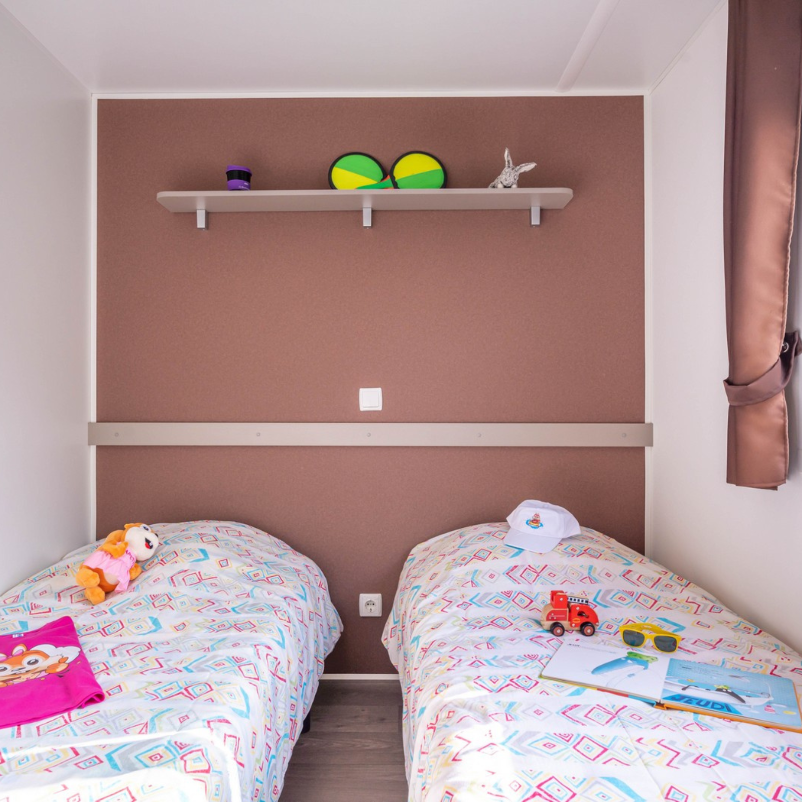 - Une chambre avec deux lits simples, idéale pour les enfants.